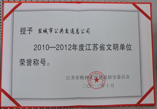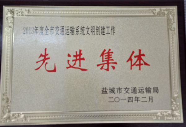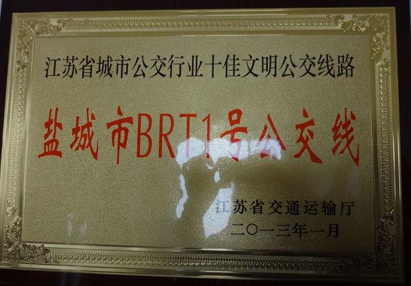 BRT1号公交线被省交通运输厅评为“公交行业十佳文明线路” 被全国实施“文明交通行动计划”领导小组评为“全国文明交通示范单位” 被省精神文明建设指导委员会授予1997年、1998年江苏省文明单位 68路线荣获全国青年文明号 2012年BRT1号线被授予市级青年文明号 公交公司荣获2012年度盐城市文明单位称号 荣获2010-2012年度江苏省文明单位称号 荣获2010-2012年度江苏省文明单位荣誉称号证书 2013年公交总公司荣誉榜 市公交总公司荣获全市交通运输系统目标任务综合考核综合先进奖 市公交总公司荣获全市交通运输系统文明创建工作先进集体 市公交总公司荣获江苏省交通企业文化建设先进单位 2014年,市公交总公司荣获市五一劳动奖状 2014年,市公交总公司荣获市五一劳动奖状的证书 市公交总公司流动道德讲堂荣获“2015年青年志愿者服务春运暖冬行动优秀项目”称号 2015年B2线荣获“青年文明号”称号 68路荣获2014年度全省交通运输行业“安康杯”竞赛优秀班组 1路荣获省“巾帼文明岗”的荣誉 K6线荣获“工人先锋号” 刘飞温馨服务示范线荣获全国交通运输行业文明示范窗口