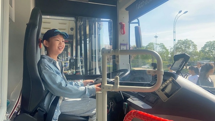 接下来,在工作人员的指导下,孩子们坐上驾驶位,亲身体验公交驾驶员的视角盲区,了解在出行过程中如何做到安全、有序,警惕大车盲区危险,深化安全出行理念。