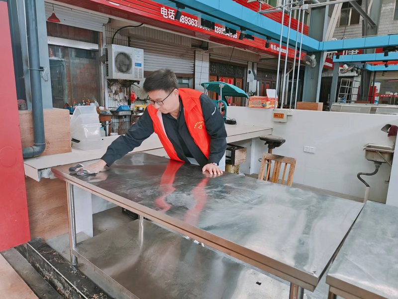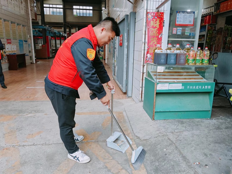 活动中,志愿者们分工协作、齐心协力,拿着清洁工具对冈中农贸市场及周边的道路开展了全面细致的卫生大清洁工作,尤其是针对农贸市场卫生死角多、地面垃圾难清理等问题,进行了全面清理。志愿者们还帮助摊主清洁摊位周边地面,擦拭菜品摆放台,为社区居民营造干净整洁、焕然一新的买菜环境。