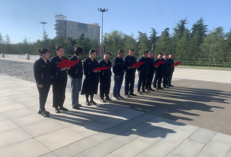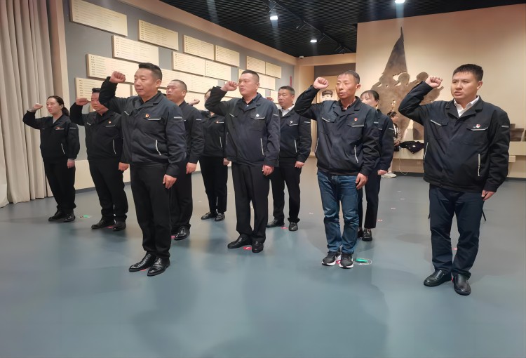 在鲜红党旗下,党支部书记朱建军带领党员面向党旗重温入党誓词,回顾入党宣誓时的庄严承诺和坚定决心,让大家以更加饱满的热情发挥共产党员的先锋模范作用,永葆共产党的政治本色。