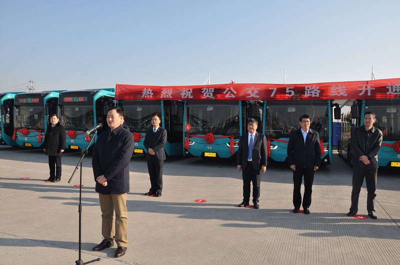 为更好地方便我市市民出行,扩大公交线网覆盖面,盐城市公交总公司今天新开辟75路公交线路。市区75路公交线路开通仪式于22日上午在环保科技城公交回车场顺利举行,副市长李逸浩参加了仪式并致辞。
