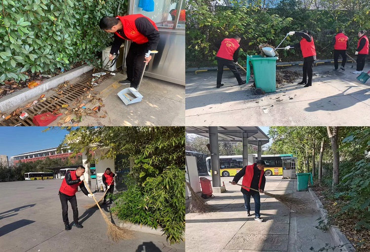 志愿者们身穿红马甲、手拿清洁工具,对场站的各个角落进行地毯式打扫。一个烟头、一片树叶、一个空瓶,志愿者们都仔细清扫,不放过任何一个卫生死角。经过大家一个半小时的努力,场站的卫生环境得到了极大的改善。