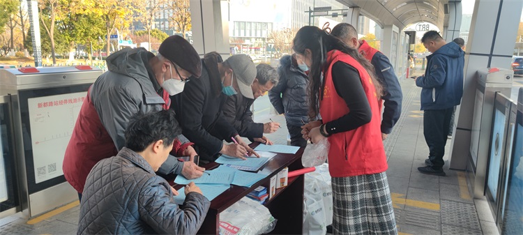 开展公交出行咨询服务活动。12月8日下午,市公交公司和交通银行的志愿者在解放路新都路、新都路解放路站台开展绿色出行志愿服务活动,宣传绿色出行理念和公交便民举措。发放《公交出行指南》、《盐城市SRT、BRT线路、主要旅游景点商业街区、交通枢纽乘车指南》、《防范电信网络诈骗宣传手册》,指导市民领取支付宝优惠券进行扫码乘车,向市民普及“我的盐城”app公交实时查询功能,提供公交出行咨询服务,发放冬日出行暖心大礼包。现场开展市民问卷调查,征求市民对公交发展的意见建议,广泛动员社会公众积极参与到绿色出行行动中。