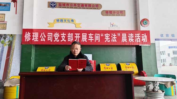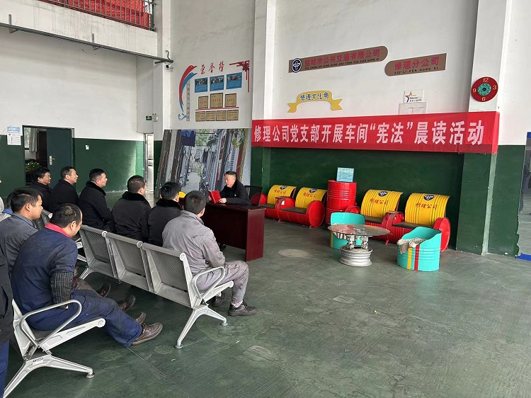 为弘扬宪法精神,建设法治中国,引导广大员工尊崇宪法、学习宪法、遵守宪法、维护宪法,12月12日上午,修理公司党支部开展以“车间宪法晨读”为主题的主题党日活动。修理公司党支部党员、团员和维修工人共三十多人参加了活动。