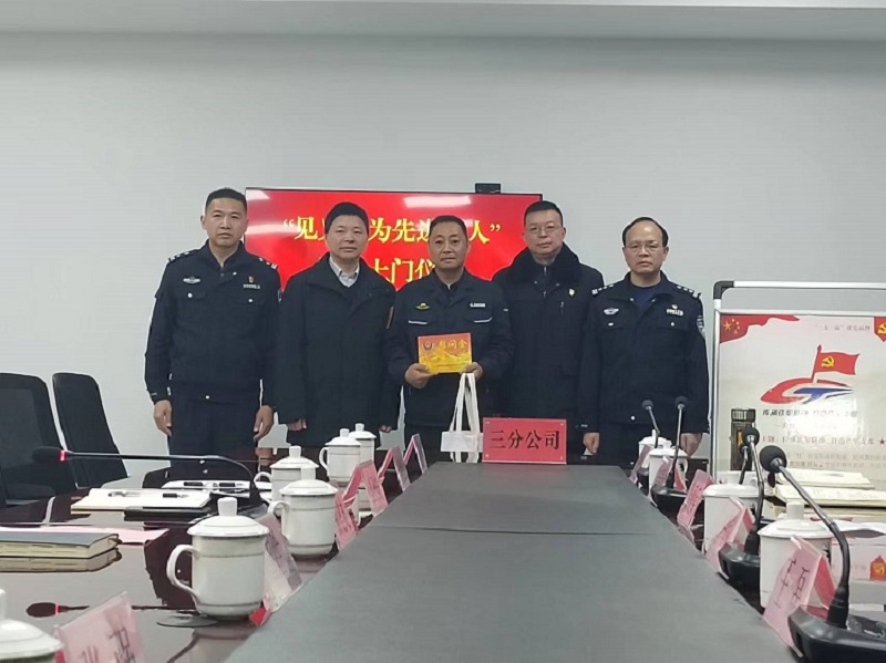 为弘扬见义勇为精神,奖励见义勇为人员,12月7日上午,盐城市公安局经济技术开发区分局政治处主任徐爱兵、市公安局公共交通治安分局副局长吉春勇一行来到市公交三分公司开展“送奖上门”活动,为公交驾驶员吴浩送上“见义勇为”慰问金。市公交公司党委副书记、工会主席夏建龙、副总经理李正东热情接待。