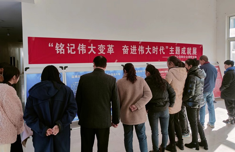 为进一步宣传习近平新时代中国特色社会主义思想,让更多市民学习领会党的二十大精神,激发市民爱国主义情怀,引导更多市民在祖国的辉煌奋斗历程中汲取奋进力量,12月20日上午,四分公司党支部联合义丰工业园区,开展“铭记伟大变革·奋进伟大时代”主题成就展,组织党员干部和部分职工参展。通过图文并茂的展板,大家可以直观地感受到党的十八大以来国家取得的辉煌成就,同时,展板也向大家展示了盐城公交近年来的发展变化,激励大家在各自的岗位上做出贡献。