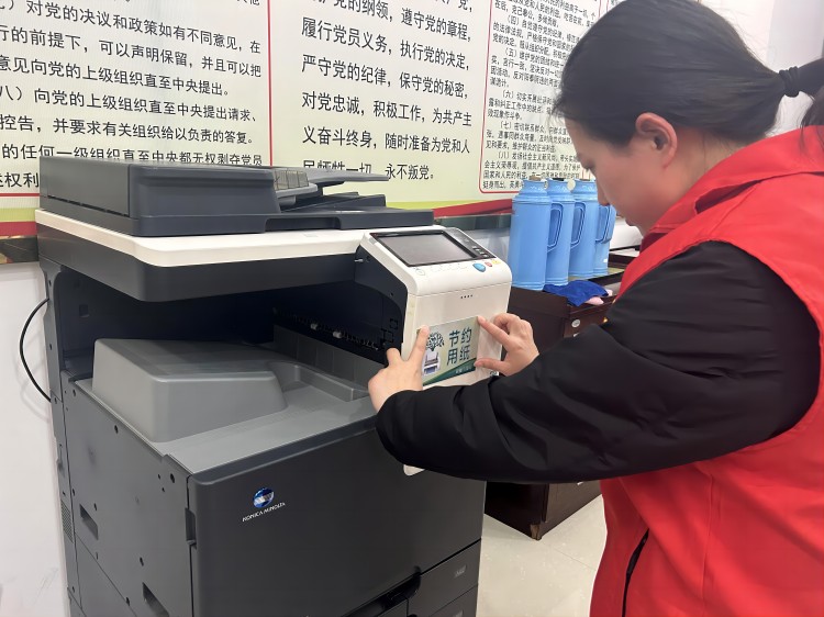 活动中,志愿者们向机关工作人员发放“节约用纸”宣传资料,讲解浪费纸张的危害和节约用纸的益处,倡议抽纸只抽一张、学会二次利用纸张、少用一次性纸杯、打印文件时尽量选择双面打印。同时在各部门的耗能产品等醒目位置,都张贴了“节约用纸”标识标贴。