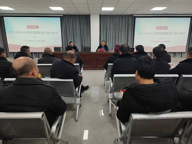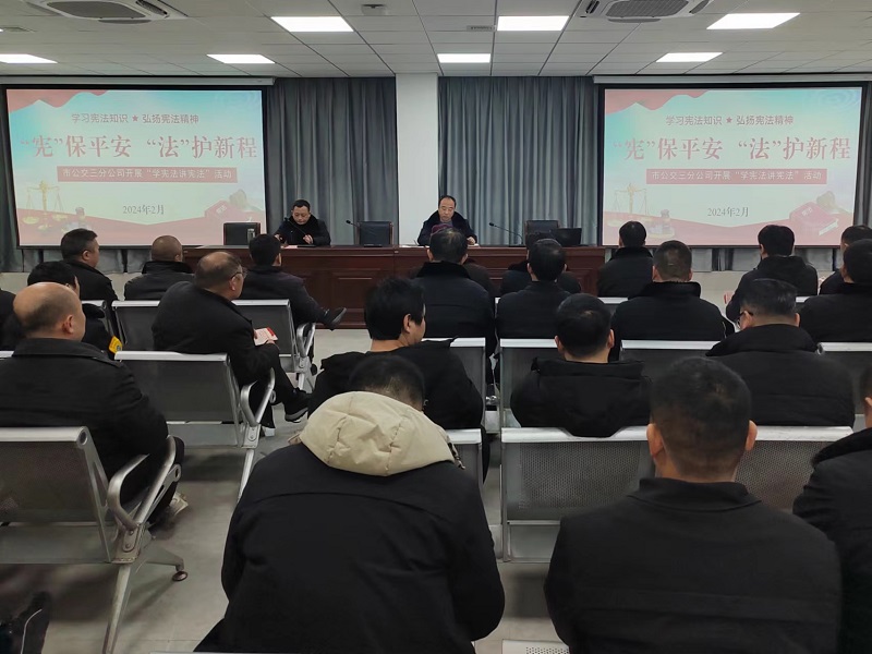 为深入学习贯彻党的二十大精神,贯彻落实习近平法治思想和习近平总书记关于加强宪法学习宣传教育的重要指示精神,2024年2月6日,三分公司利用月度安全教育例会契机,组织开展以“‘宪’保平安 ‘法’护新程”为主题的学宪法讲宪法活动,旨在以法制宣传教育筑牢安全生产防线。