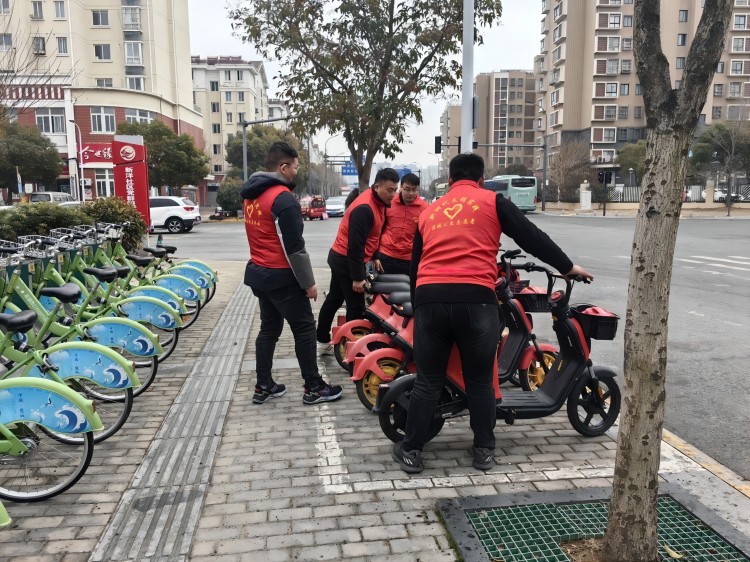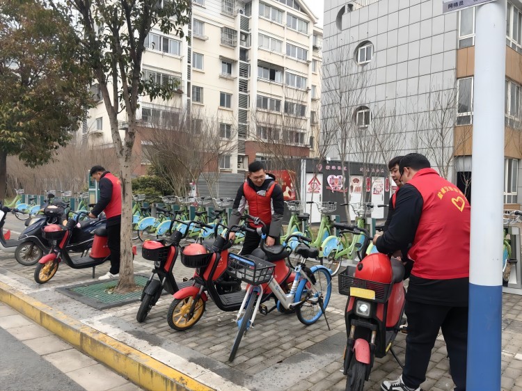 工作人员还对沿街电动车辆进行有序摆放,引导居民外出有序停放车辆,用实际行动带动更多群众落实双碳行动、践行文明交通。