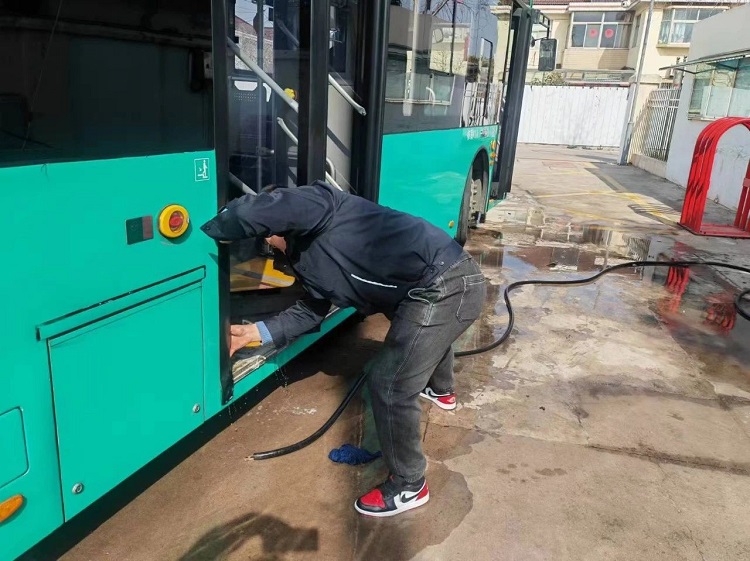 活动期间,各条线路争先恐后、奋勇当先,对车辆外部、轮毂、车窗,车厢内座椅、扶手、踏板、门框等进行全面清洁。车队里唯存的柴油车K201线路,发动机油污是难点,车况也较差,该线路驾驶员不叫苦不喊累,迎难而上、逐台过堂,黑渍、油渍、胶渍,渍渍必除,不留任何卫生死角。