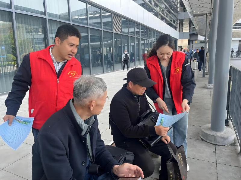 在盐城高铁站枢纽,志愿者们统一着红色志愿者服装,积极疏导现场乘客,引导乘客有序上下车,并向市民乘客发放公交出行指南,解答乘客问询,宣传公交惠民便民举措。