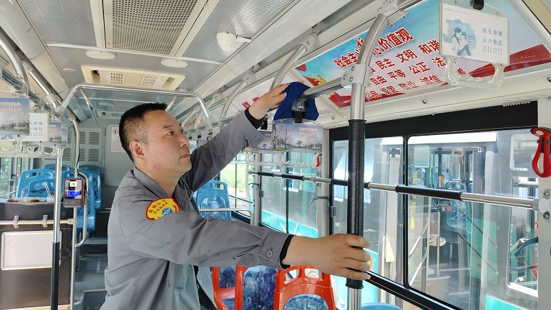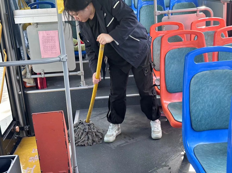 为进一步提升公交服务品质,给乘客营造温馨、整洁、舒适、健康的乘车环境,展示公交良好精神风貌,4月下旬以来,四分公司以公交车辆“大清扫”、服务质量再提升为目标,扎实开展车辆卫生清洁活动。
