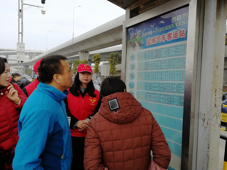 2月24日上午,盐城公交总公司组织公交志愿者在五星客运站开展以“导乘、换零、服务”为主题的志愿服务活动,帮助乘客有序排队上车,为乘客提供导乘、换零等服务。