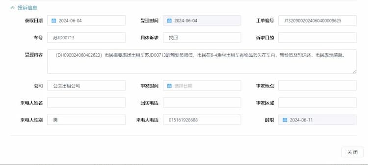 6月4日,公交出租汽车公司收到12345政务热线转来的表扬工单,市民陆先生在来电中表达了对苏JD00713出租车司机倪兆国主动送还手提包的感谢之情。