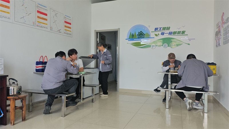 此次改造从细微处着手,充分考虑了驾驶员们的实际需求与心理感受。走进焕然一新的职工驿站,首先映入眼帘的是宽敞明亮的用餐区,驿站内放置了3台微波炉和一台冰柜,方便驾驶员们随时加热食物、补充能量,大家一边用餐一边聊天,欢声笑语,共同享受家的温暖。驿站两侧墙壁张贴了道路危险源辨识图和“家的安全寄语”,在驾驶员等待发车间隙起到叮嘱作用,提高大家的安全意识。