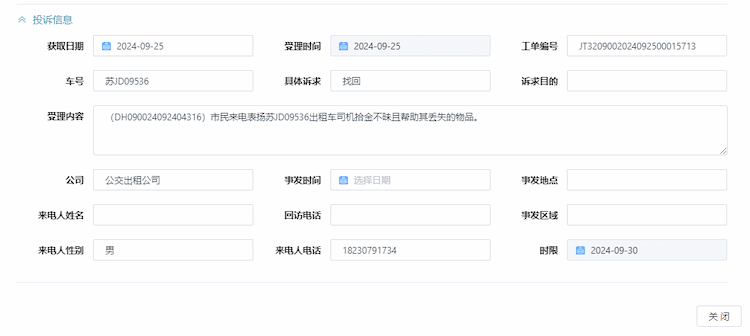 9月26日,公交出租公司接到市交通运输服务中心转来的12345政务热线表扬工单,市民李先生来电对苏JD09536出租车驾驶员张一华师傅主动归还行李箱的善举表示感谢。