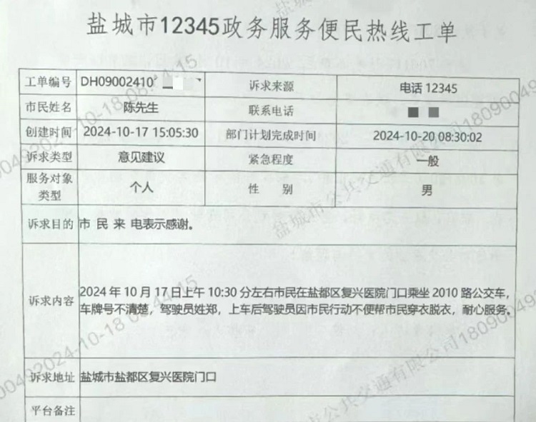“我一定要表扬这位驾驶员,他真的太热心了。”10月17日,市公交公司收到一份来自12345政务服务热线的表扬工单,市民陈先生对2010线路驾驶员郑信柏帮助行动不便的乘客上下车的优质服务行为提出表扬。这是本月郑师傅第二次受到该市民来电表扬。