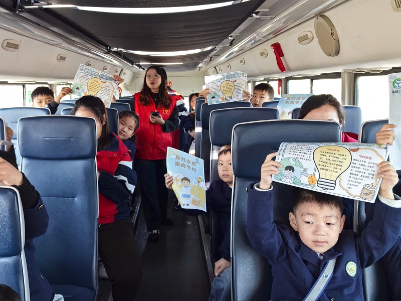 为进一步培育和践行社会主义核心价值观,大力弘扬中华民族勤俭节约的优良传统,教育引导未成年人从小树立“反对浪费、崇尚节约”的文明意识,11月7日上午,三分公司党支部组织机关党员职工利用好随车同行护送时间,走进名城幼儿园定制公交车厢开展“反对浪费 崇尚节约”志愿服务宣讲活动。