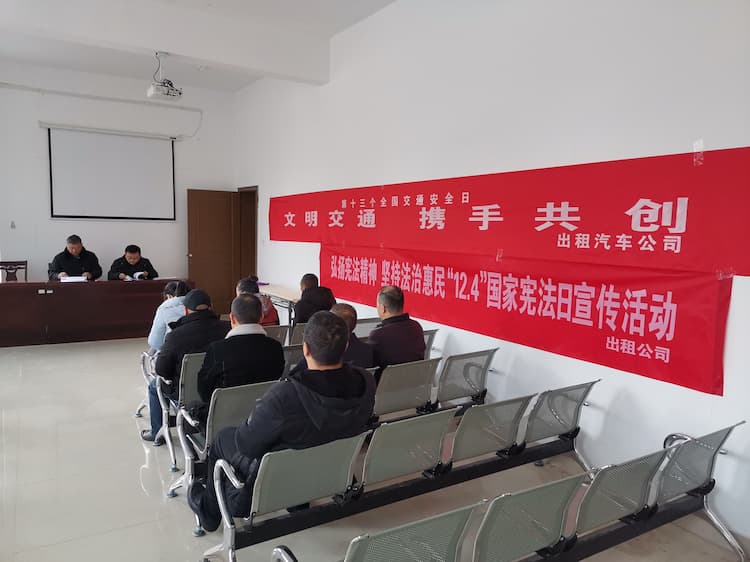 今年12月2日是第十三个全国交通安全日。为进一步做好冬季出租车驾驶员交通安全宣传教育工作,增强出租车驾驶员的交通安全意识和法治意识,预防和减少道路交通事故的发生,12月17日,出租汽车公司组织开展交通安全宣传活动。