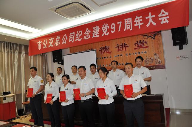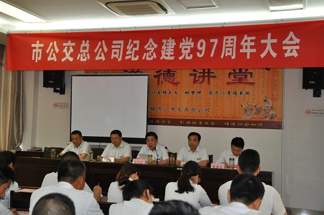 6月29日下午,市公交总公司召开纪念建党97周年暨“七一”表彰大会,党委书记、总经理王文法出席会议,并为与会同志上了一堂主题为“不忘初心,牢记使命,永做合格共产党员”的党课。公司党委领导班子成员、中层干部、受表彰对象及部分优秀党员代表80余人参加了会议。