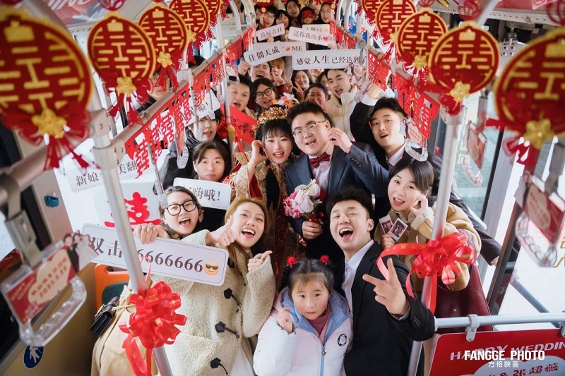 家人对张超薇的想法也十分支持,公交婚车能容纳更多亲友,尤其是外地同学可以在接亲途中一起互动,玩游戏、唱歌、聊天,让婚礼更加热闹有趣,特别又有意义。