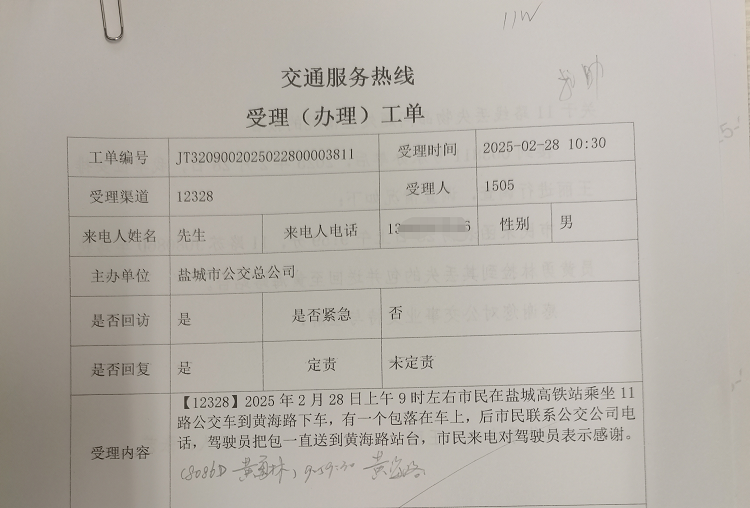 28日上午9时,一位市民在盐城高铁站乘坐11路公交车前往黄海路,不慎将背包遗落在车上。发现背包遗失后,该市民迅速联系公交公司寻求帮助。