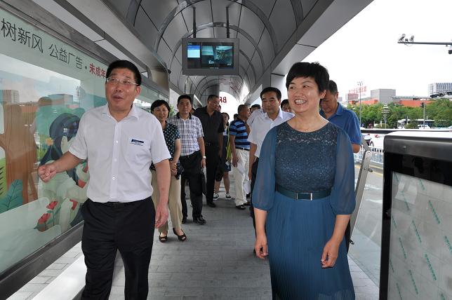 姜友新一行先是来到解放路世纪大道BRT站台。姜友新充分肯定了市区BRT站台的改造出新工程,认为这是一件提升公交形象、方便市民出行的惠民实事工程,同时也指出,站台的设计应坚持以人为中心的理念,仍需在方便市民出行方面加以改进。随后,姜友新一行参观了城南公交回车场、黄海一卡通公司和市公交调度中心,察看了市公交智能调度系统。