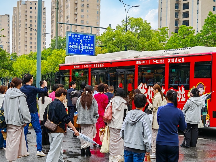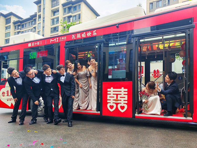 2025年5月5日,正值五一黄金周假期尾声,盐城街头迎来一场别具匠心的婚礼——新郎含章与新娘十一选择“520”号定制公交婚车作为迎亲车队,以低碳环保的方式开启人生新篇章。这场婚礼将环保时尚婚庆理念与节日氛围巧妙融合,构成了假期中一道温馨而独特的城市风景线。