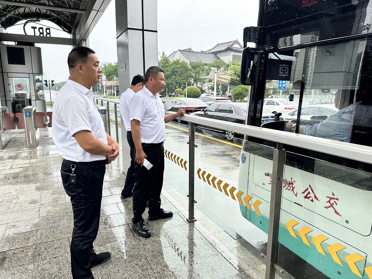 分公司相关负责人在上路上线叮嘱驾驶员安全行车时强调,全体驾驶员必须牢固树立安全行车意识,将乘客安全放在首位,暴雨天气行车务必要时刻关注路面情况变化,准确判断积水深度,严禁冒险涉水通行,防止车辆进水引发故障或熄火;严格控制车速,主动降低行驶速度,预留充足的制动距离和反应时间;显著延长与前车的跟车距离,避免紧急制动;遇情况提前采取点刹方式减速,坚决杜绝急刹车,严防追尾、侧滑等事故发生;进站停靠时注意避开积水,提醒乘客上下车注意脚下湿滑,行驶中关注车内乘客动态,防止因颠簸、急刹造成乘客摔倒。
