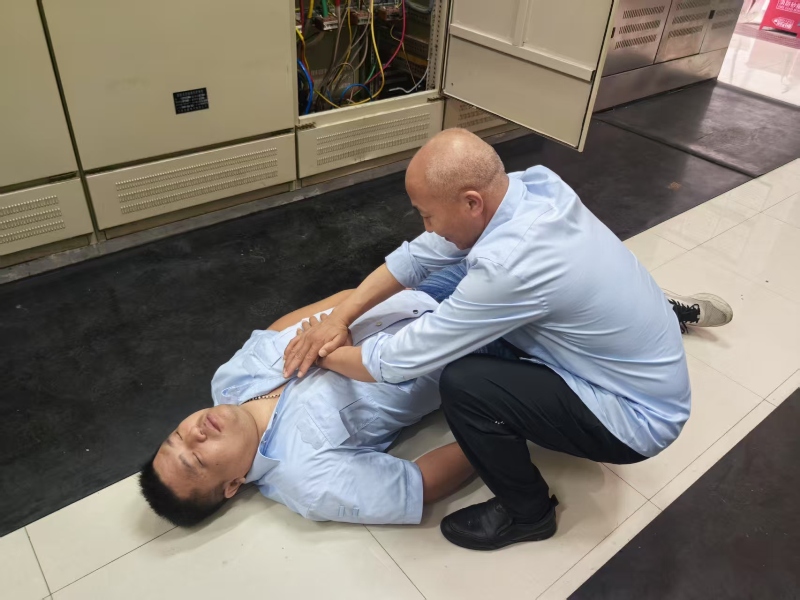 演练过程中,正在检修作业的电工因操作不当发生触电事故后,现场安全员立即按照应急预案,迅速切断电源,并使用绝缘工具对“伤员”进行救援。同时,现场指挥员组织其他人员按照预定的疏散路线迅速撤离现场,确保了人员安全。医疗救护组对“伤员”进行了模拟的急救处理,并迅速将其转移到安全区域。