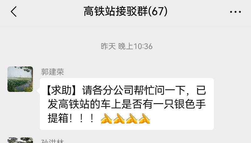 将找到的行李箱送至高铁站西广场调度室