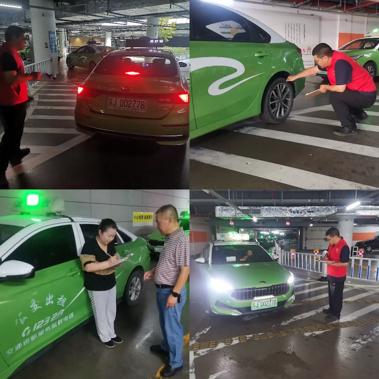 2025年8月21日,出租汽车公司组织管理人员前往盐城市高铁站西广场,对营运中的出租汽车进行全面安全检查,旨在排查安全隐患,确保车辆性能良好,为市民提供安全、可靠的出行服务。