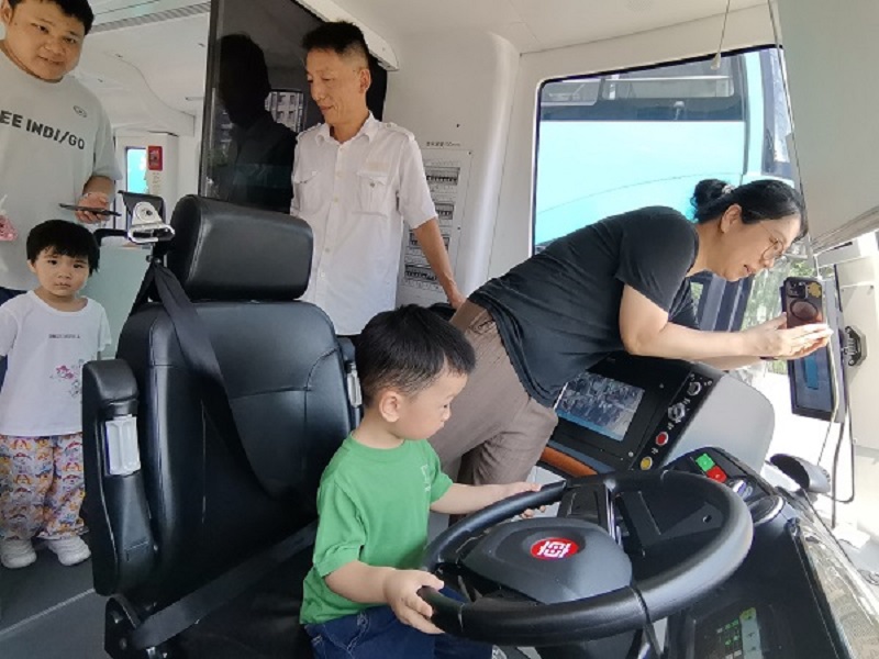 伴随着阵阵欢声笑语,活动在SRT试乘体验中渐渐接近尾声。孩子们趴在车窗旁,兴奋地望着窗外流动的街景,亲身感受着“城市绿色动脉”的平稳与便捷。一位家长感慨地说:“这种沉浸式学习方法特别好,不但让孩子们初步了解了公交的运行奥秘,更在他们心中播下了绿色出行、低碳生活的种子。”