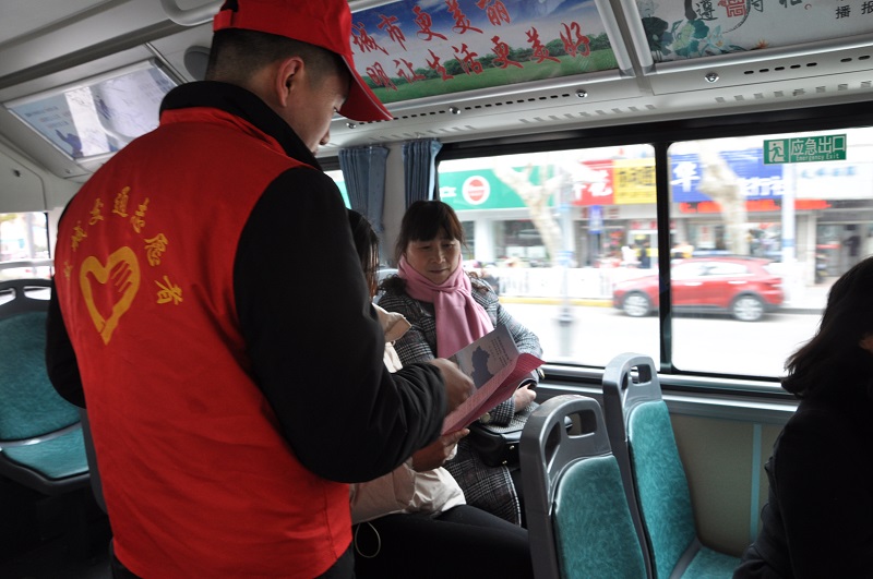 上午9点,各小组志愿者按照活动分工准时到达火车站公交回车场、城西公交回车场、建军路公交站台等多个主要站场开展志愿服务活动。
