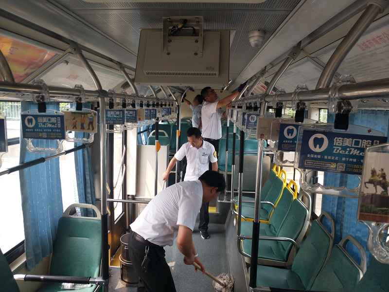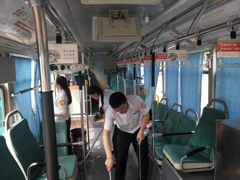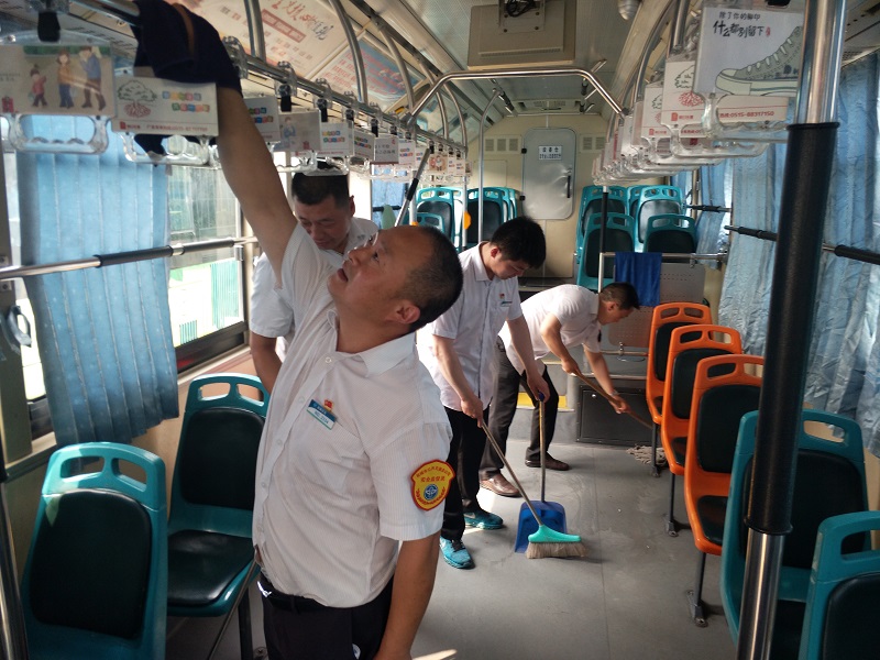参观结束后,全体成员来到了城西公交回车场,开展党团员进场站整治车内卫生死角主题党日活动,40余名党团员经过责任分工后,拿着清扫工具认真投入到此次的车内卫生整治行动中。