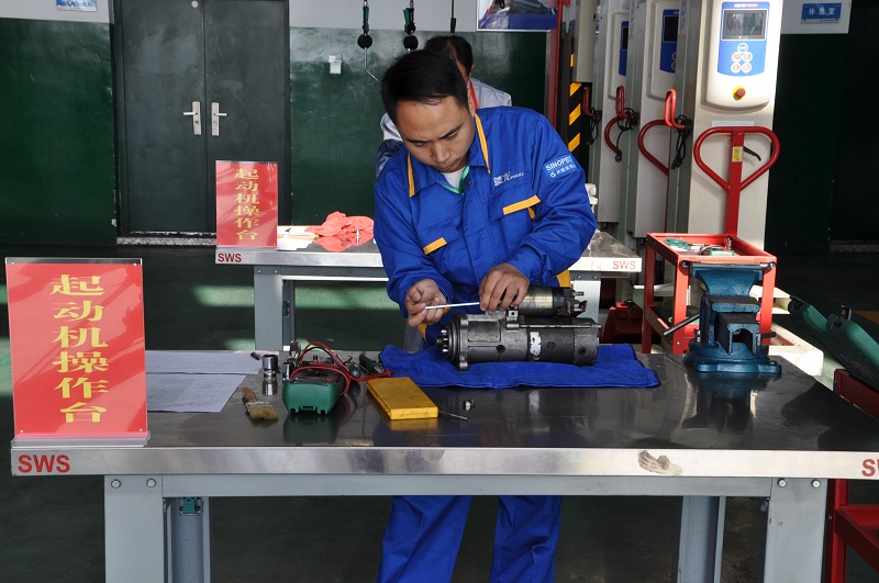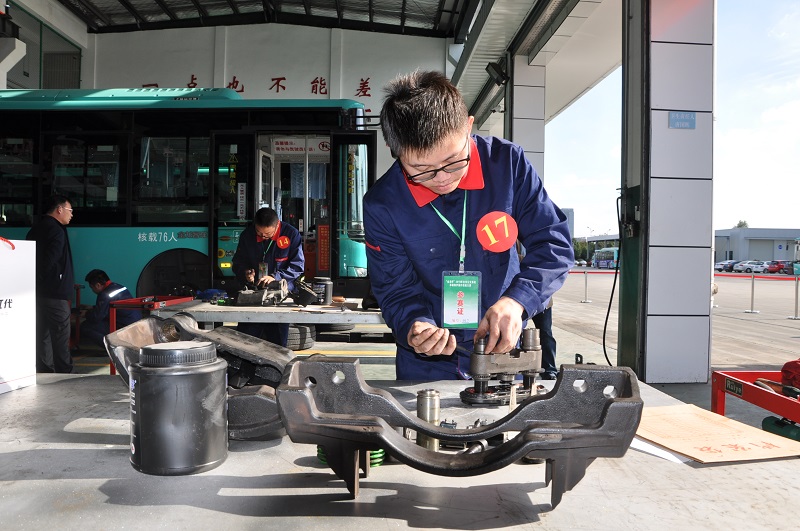 “全市公交系统车辆维护操作技能竞赛是由盐城市总工会、市人力资源和社会保障局、市交通运输局联合主办,市公交总公司承办,每年举办一次,这次是第3年举办了。”工会主席邵吉龙介绍道,该比赛分为理论考试和操作技能两部分,后者又分为发动机气缸测量、混动综合故障排除、起动机分解与组装(或前盘式制动器检修)4项内容。