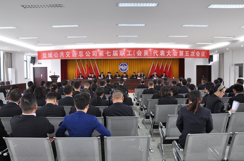 11月12日下午,盐城市公共交通总公司召开第七届职工(会员)代表大会第五次会议,公司领导班子成员、职工代表90人参加大会。会议主要议题是审议通过《2019年职工工资调整方案》,会议由市公交总公司工会主席邵吉龙主持,党委书记、总经理王文法出席并讲话。