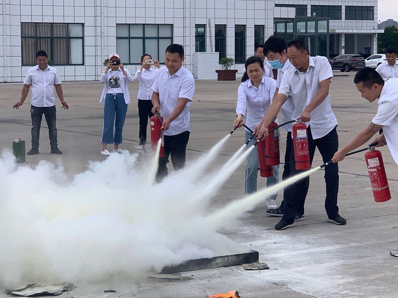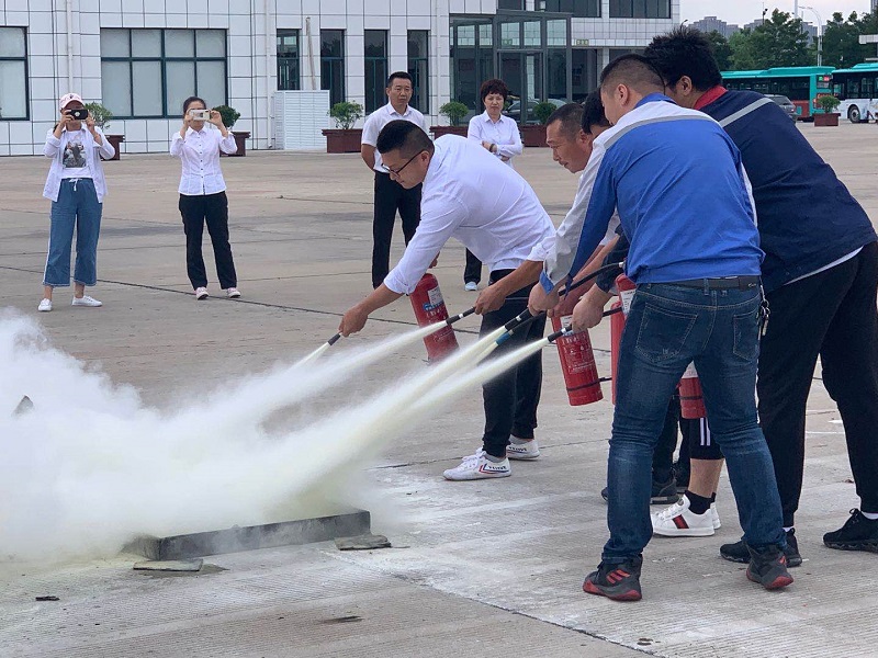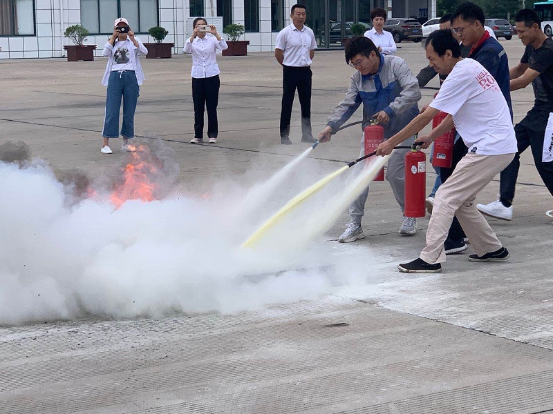 消防演练现场,公司安全保卫处处长孙琳详细讲解了发生火灾时人员疏散、火场自救逃生等消防知识,并对灭火器的种类、使用方法、注意事项以及日常维护进行了系统介绍,“将瓶体颠倒几次,使筒内干粉松动,然后除掉铅封,拔掉保险销,站在火源约2-4米的上风或侧风位置,一手握住压把,一手握住喷管,对着火苗根部喷射灭火”。孙琳详细地向参加演练人员讲解干粉灭火器的正确使用步骤和方法,并组织他们分批进行消防灭火演习,及时矫正不规范的操作。