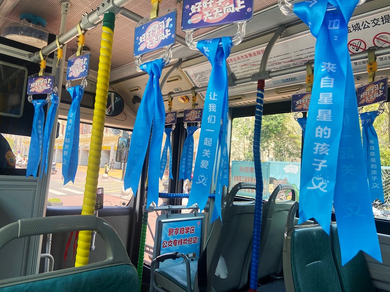 由于疫情原因,今年的宣传活动通过在营运车辆、BRT站台、红苗专线上悬挂代表关爱、理解、帮助、融合之情的“蓝丝带”传递爱心。
