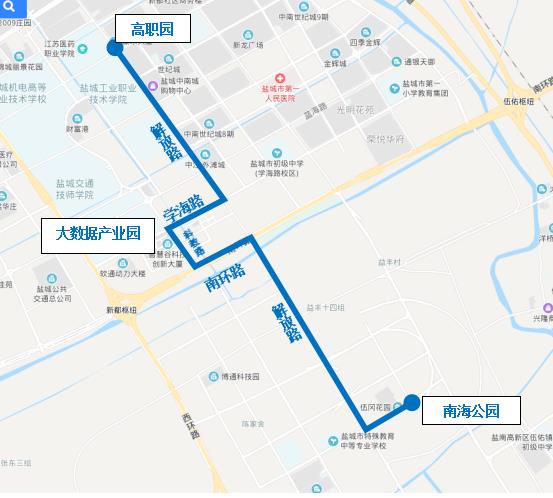 停靠站点:高职园BRT站台(向南单向停靠)、海洋路BRT站台(向北单向停靠)、学海路解放路口、大数据产业园、南环路科教路口(BRT站台)、润海路解放路口、南海公园。