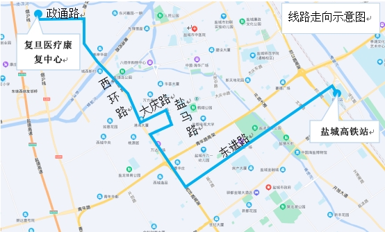 线路起讫点:盐城高铁站至盐城复兴医院。
