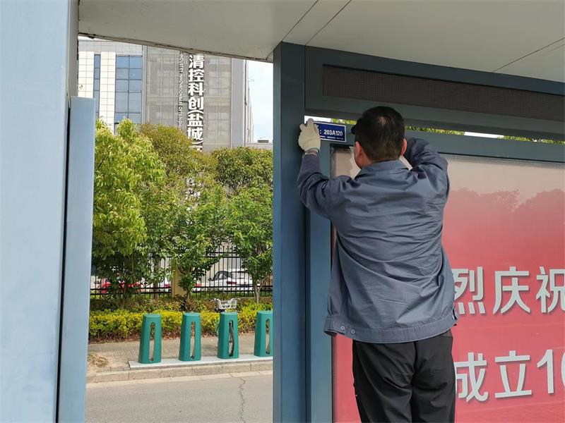 在进行站台编码牌安装工作的同时,工作人员还同步对站台的安全隐患进行检查整改,对灯箱面板进行清洁清理,给乘客提供一个安全、舒适、整洁的候车环境。