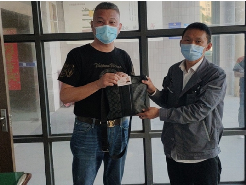 当天下午17:40左右,刘先生跟着倪师傅的车来到城南回车场,顺利从陈涛师傅手上领回丢失的挎包,“太感谢陈师傅和倪师傅了,没有他们的热心帮助,我不可能这么顺利找回挎包。”