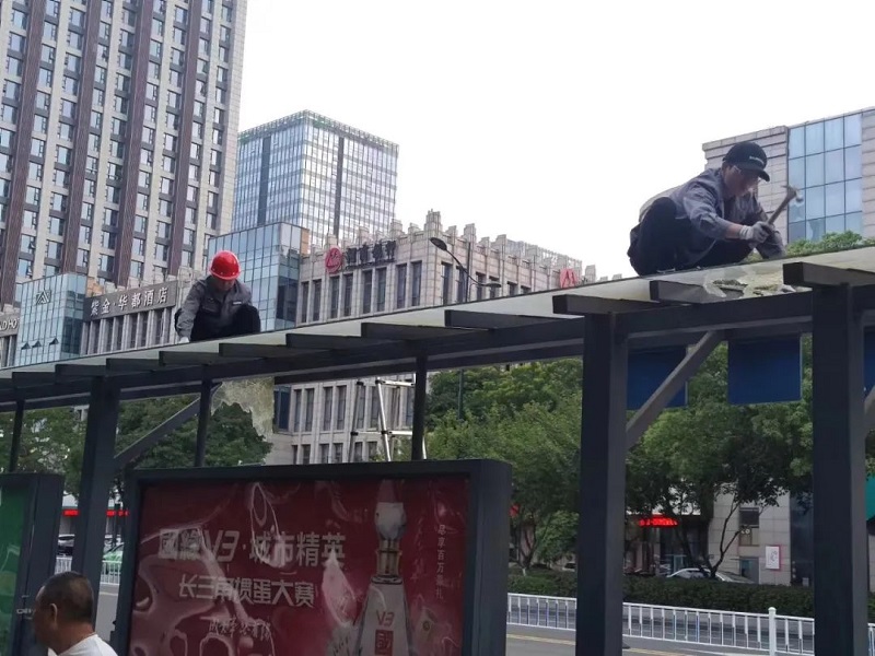 雨情就是命令,安全就是责任。公交服务公司立即对接有关职能部门,办理施工审批手续,加快对3座公交候车亭进行改造出新。目前,中国银行站南北2座站台顶棚已完成改造,飞驰新天地站西侧站台已完成改建出新。