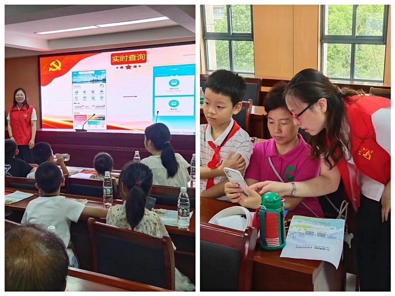 实时公交查询功能推介。志愿者们为参加活动的社区群众发放盐城公交出行指南、绿色出行倡议书等宣传折页,宣传推广“我的盐城”APP、“盐城公交”微信公众号,讲解实时公交查询功能,引导社区群众下载体验,便利群众出行。