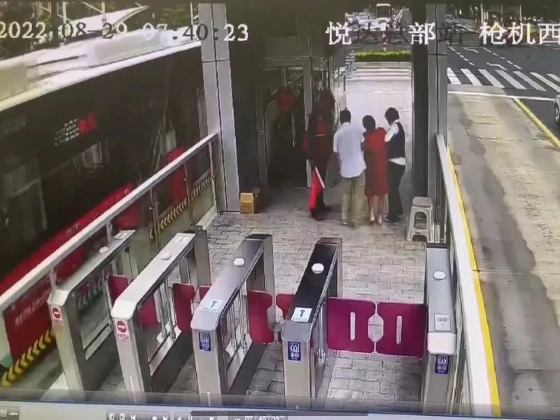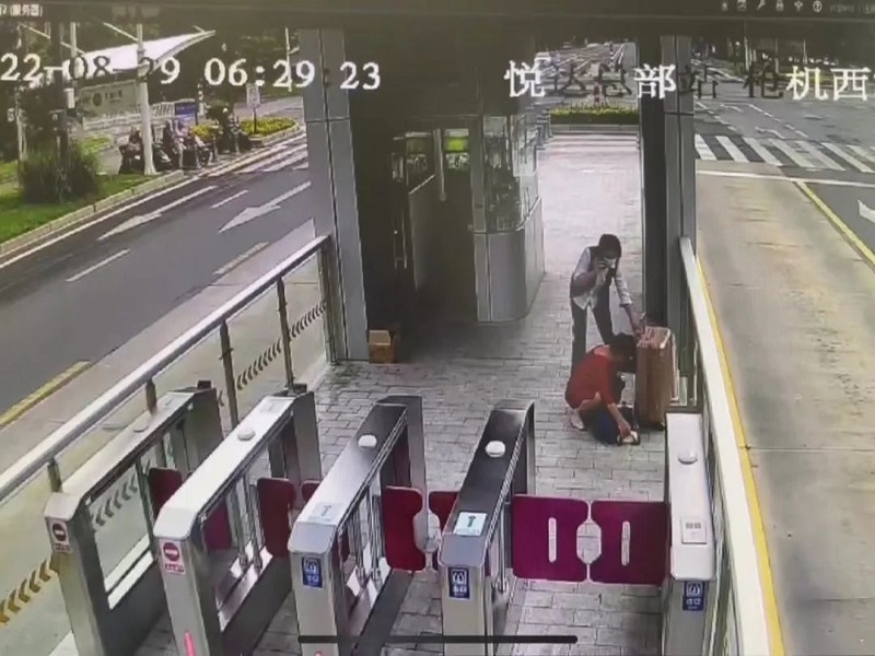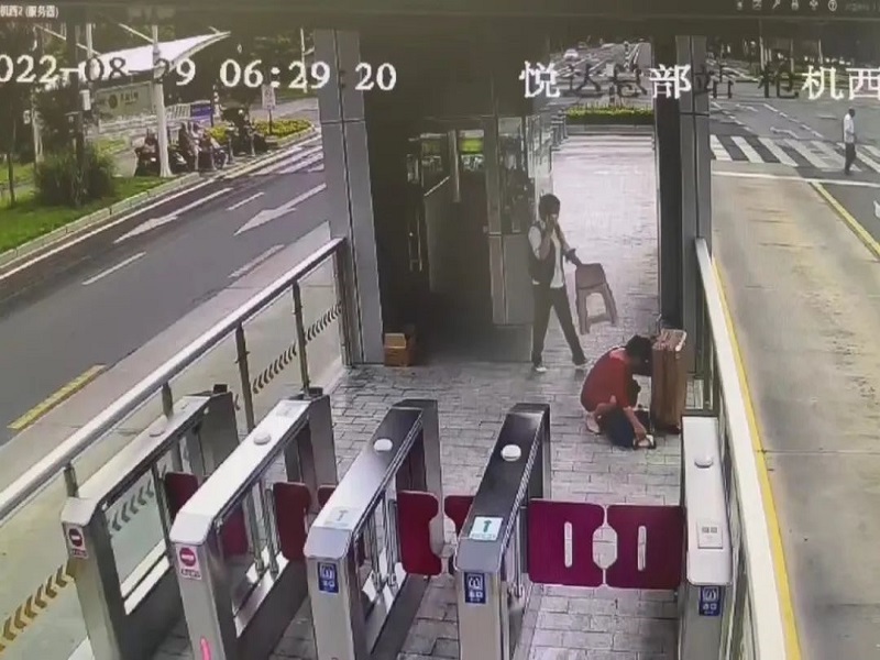 8月29日早上6时20分左右,一位老人独自推着拉杆箱,步履蹒跚地往悦达总部BRT站台走去,还未走到入口处,老人便体力不支扒住护栏蹲下了,当班站务员刘富霞看见后,快步上前查看老人的情况。“头疼,头疼”……老人一个劲地自言自语,情绪有点烦燥,不时将头往护栏上的玻璃上撞。