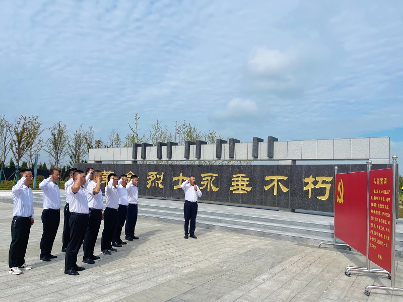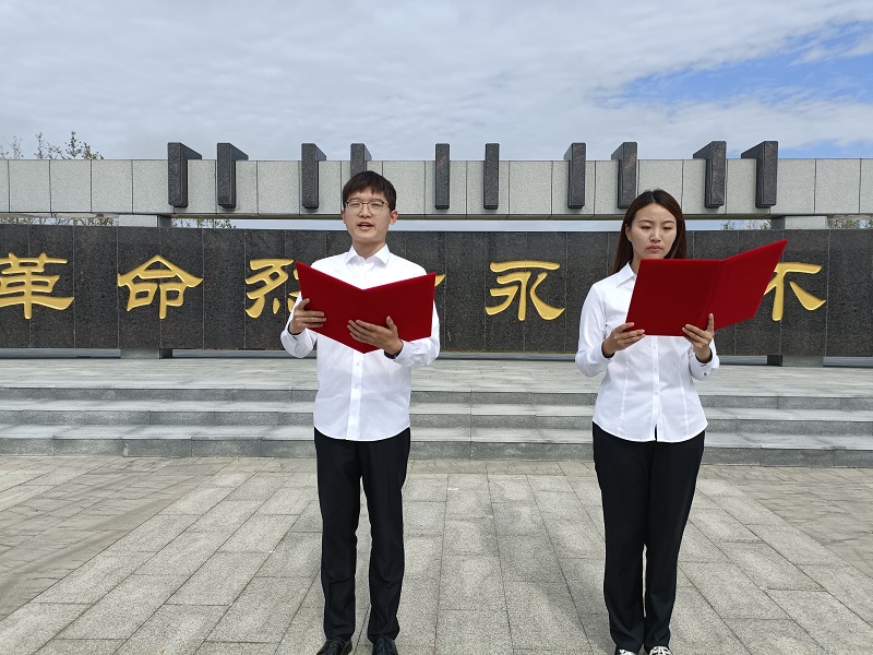 斯人已逝,浩气长存。在庄严肃穆的烈士纪念碑前,全体人员高唱中华人民共和国国歌,向革命烈士默哀、敬献鲜花,深切表达对烈士的敬意和哀思。随后,大家面向党旗重温入党誓词,再次庄严宣誓。夏月、齐龙龙同志诵读了《喜迎二十大,永远跟党走,奋进新征程》。