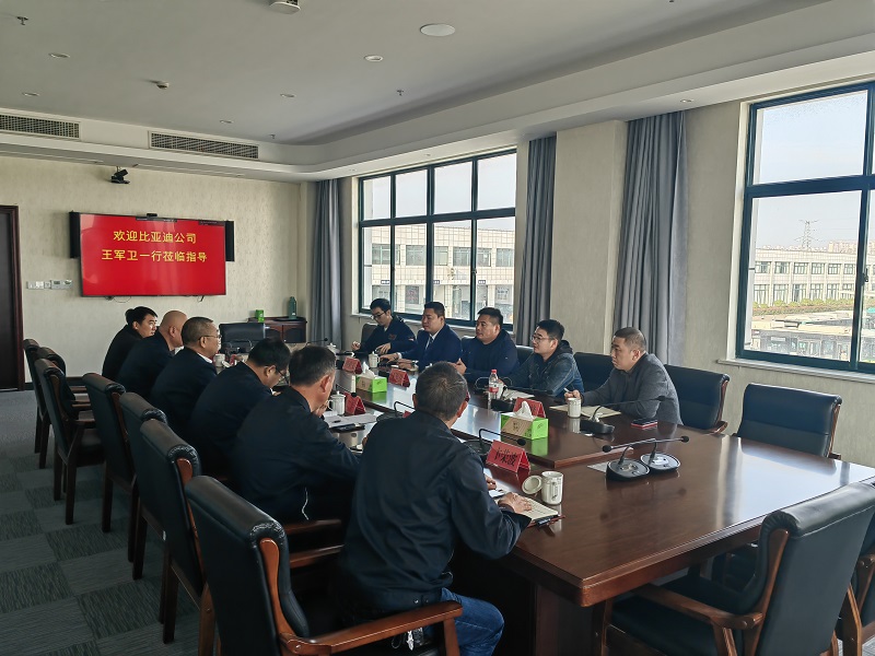 11月14日,比亚迪股份有限公司东部销售中心销售总监王军卫带队来我司洽谈整车售后及弗迪电池售后合作事宜。副总经理邵吉龙热情接待。