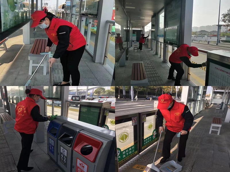 活动中,党员志愿者们发扬不怕脏、不怕累的精神,他们身穿红马甲,手持扫把、簸箕、抹布等清洁工具,来到开放大道无人值守公交站台开展清洁大扫除,对广告灯箱、座椅、垃圾箱、站台地面等部位一一进行保洁,努力扮靓市民公交出行环境,以实际行动播撒文明“种子”,擦亮城市的流动文明窗口。