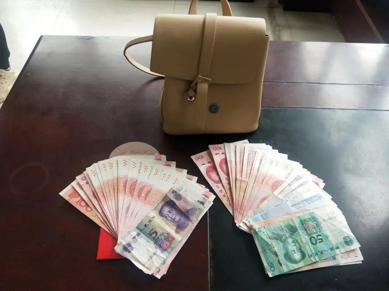 当天下午5点多,69路驾驶员蔡茂培驾车行驶至终点站步凤公交停车场后,打扫车厢卫生时,发现了一只卡其色的挎包,检查发现包里有着4500多元现金和几张购物卡。因一时没有失主的联系方式,他便将包妥善保管起来,正准备跟公司报备时,便接到后台工作人员施乃兰电话,告知有了失主的消息。